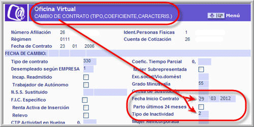 La imagen anterior nos muestra un ejemplo de comunicado de inicio de la situación, (tipo de inactividad: 2 es el código que corresponde a la huelga total y 3 corresponde a huelga parcial) realizado por el sistema RED. La finalización de la situación se realiza haciendo otra comunicación suprimiendo el código 2 ó 3 y poniendo como fecha: 30 de marzo de 2012.