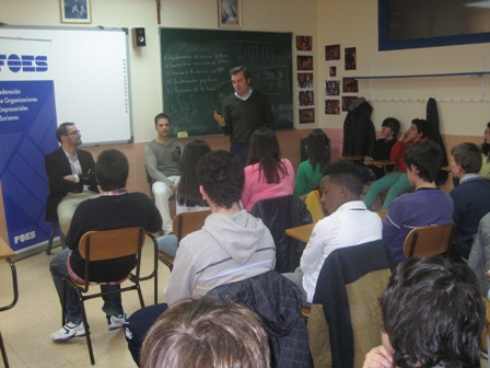 Cuarenta alumnos de 2º de la ESO del Colegio de Nuestra Sra. Del Pilar (PP Escolapios) asistieron a la charla informativa celebrada el pasado viernes en el colegio, en la que participó FOES (Federación de Organizaciones Empresariales Sorianas).