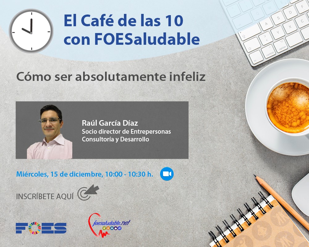 ‘Cómo ser absolutamente infeliz’ es el título de la octava cita de ‘El café de las 10 con FOESaludable’, en el que Raúl García Díaz nos planteará la psicología inversa como una forma diferente de afrontar las situaciones difíciles, más numerosas que nunca desde el inicio de la pandemia de covid.