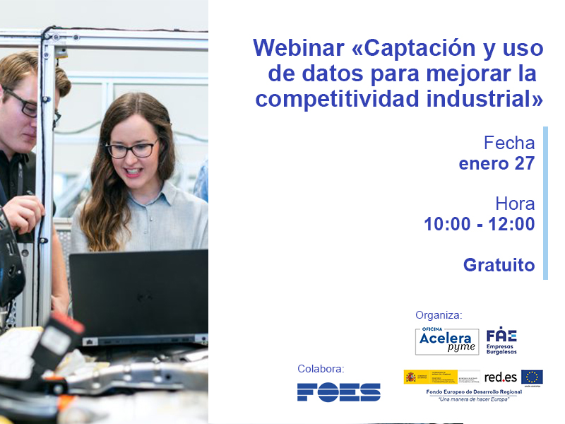El webinar ‘Captación y uso de datos para mejorar la competitividad industrial’ se desarrollará el jueves, 27 de enero de 10 a 12 horas de forma telemática. Los interesados deberán inscribirse en la web de FOES (www.foes.es).