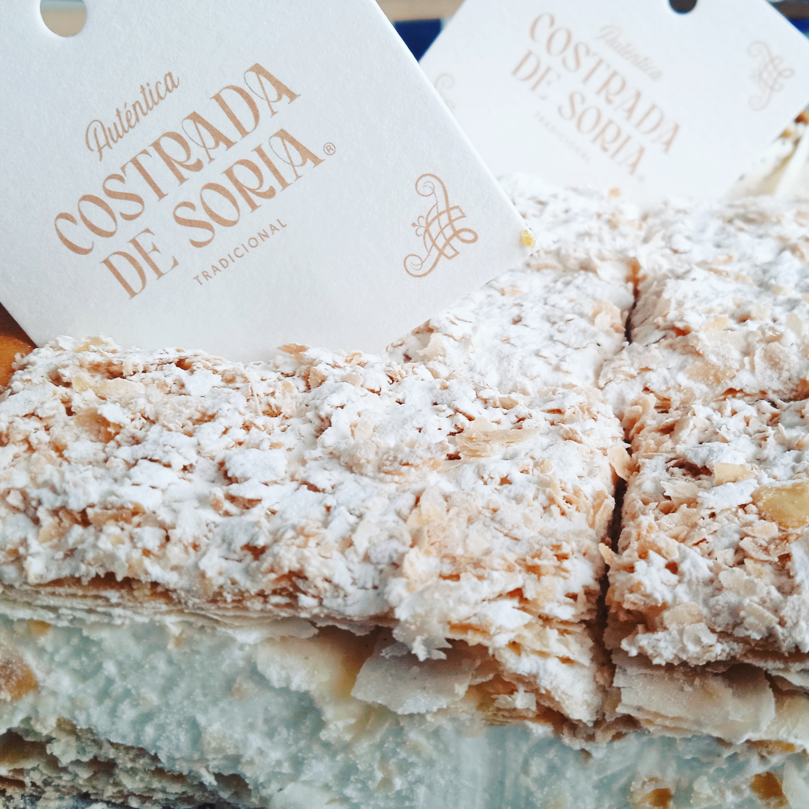 Para aquellos que no la conozcan, la Costrada de Soria es un postre tradicional soriano. Se elabora superponiendo capas de milhoja de hojaldre y rellenos de nata o crema. Esta es la composición más común que puede encontrar cualquier persona que se acerque a una pastelería en Soria ciudad o en los pueblos de la provincia.