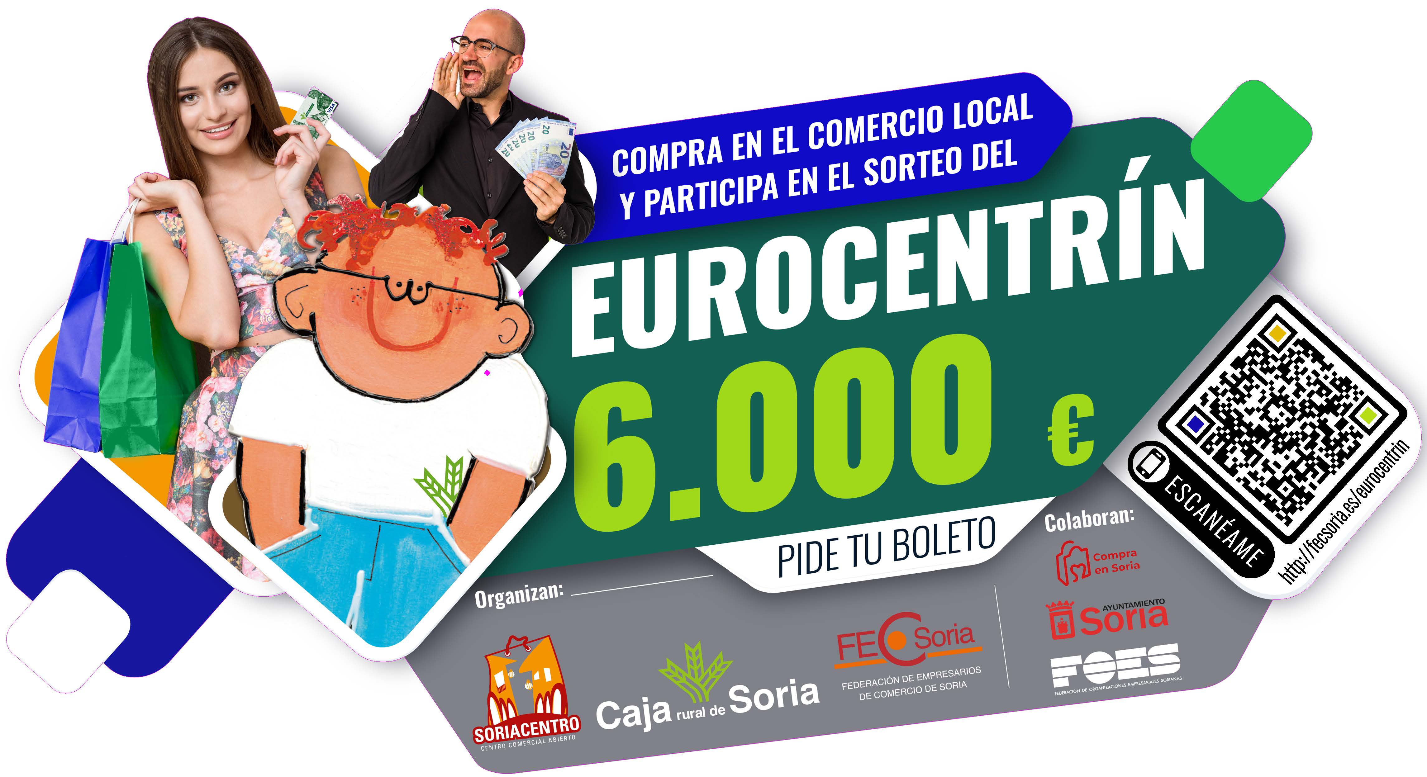 El ganador del Eurocentrín tendrá luego la oportunidad de gastar el premio en una maratón de compras de 24 horas de duración en los 130 negocios. El listado de comercios participantes puede consultarse en la página web de FECSoria – www.fecsoria.es . También se puede acceder a este espacio web escaneando el código QR que aparece en los adhesivos de mostrador y en los vinilos exteriores del sorteo situados en los establecimientos participantes.