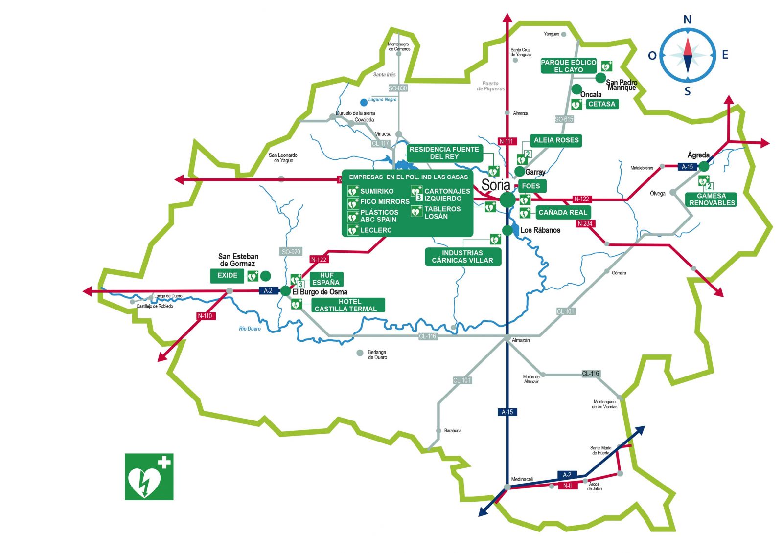 Ya son beneficiarias del mismo y cuentan con un total de 9 desfibriladores (DESA) las empresas Industrias Cárnicas Villar , Aleia Roses, Hotel Castilla Termal Burgo de Osma, Cañada Real, Fico Mirrors, Plásticos ABC y Cartonajes Izquierdo. Además otras empresas ya disponían de desfibriladores con anterioridad a la firma del acuerdo.