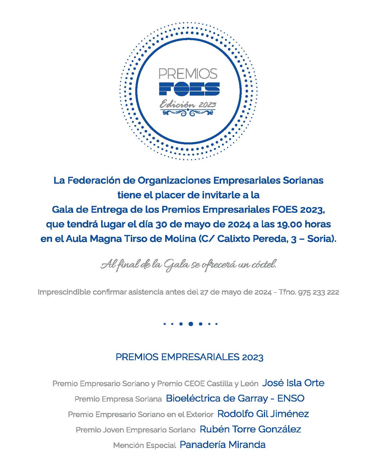 | Ponente | XXX edición de los Premios Empresariales FOES |