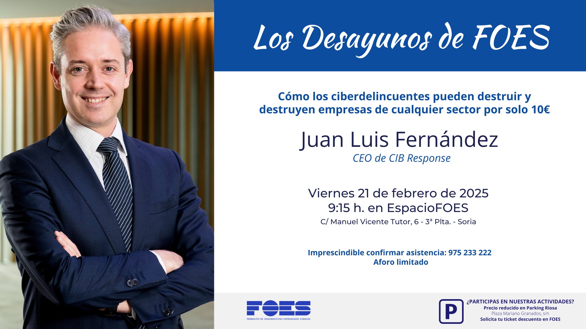 | Ponente | Juan Luis Fernández, CEO de CIB Response y experto en Ciberseguridad |
