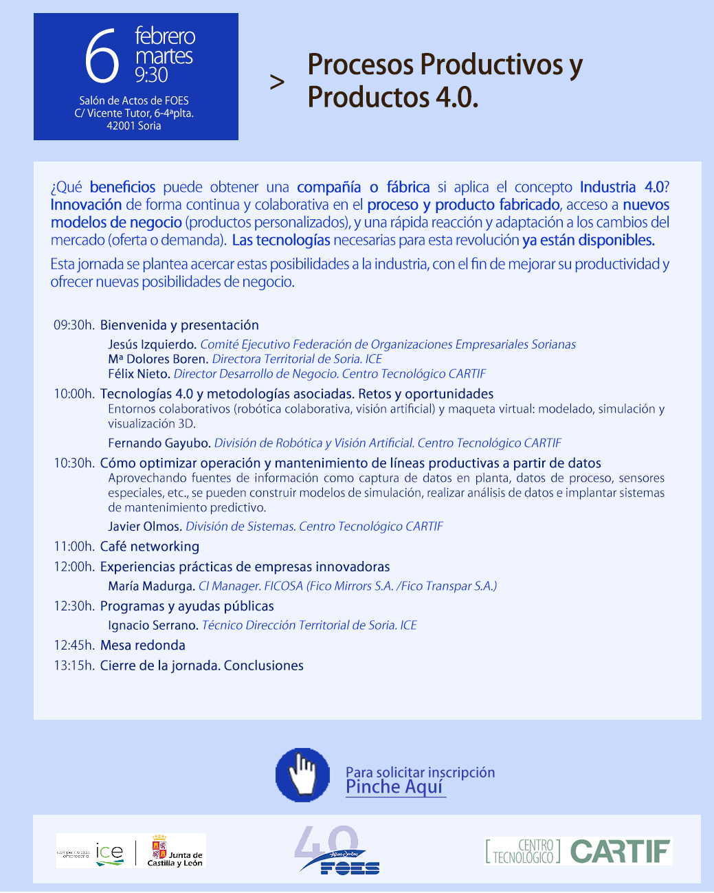 | Lugar | Salón de Actos de FOES - Vicente Tutor 6 - 4ª planta 42001 - Soria |