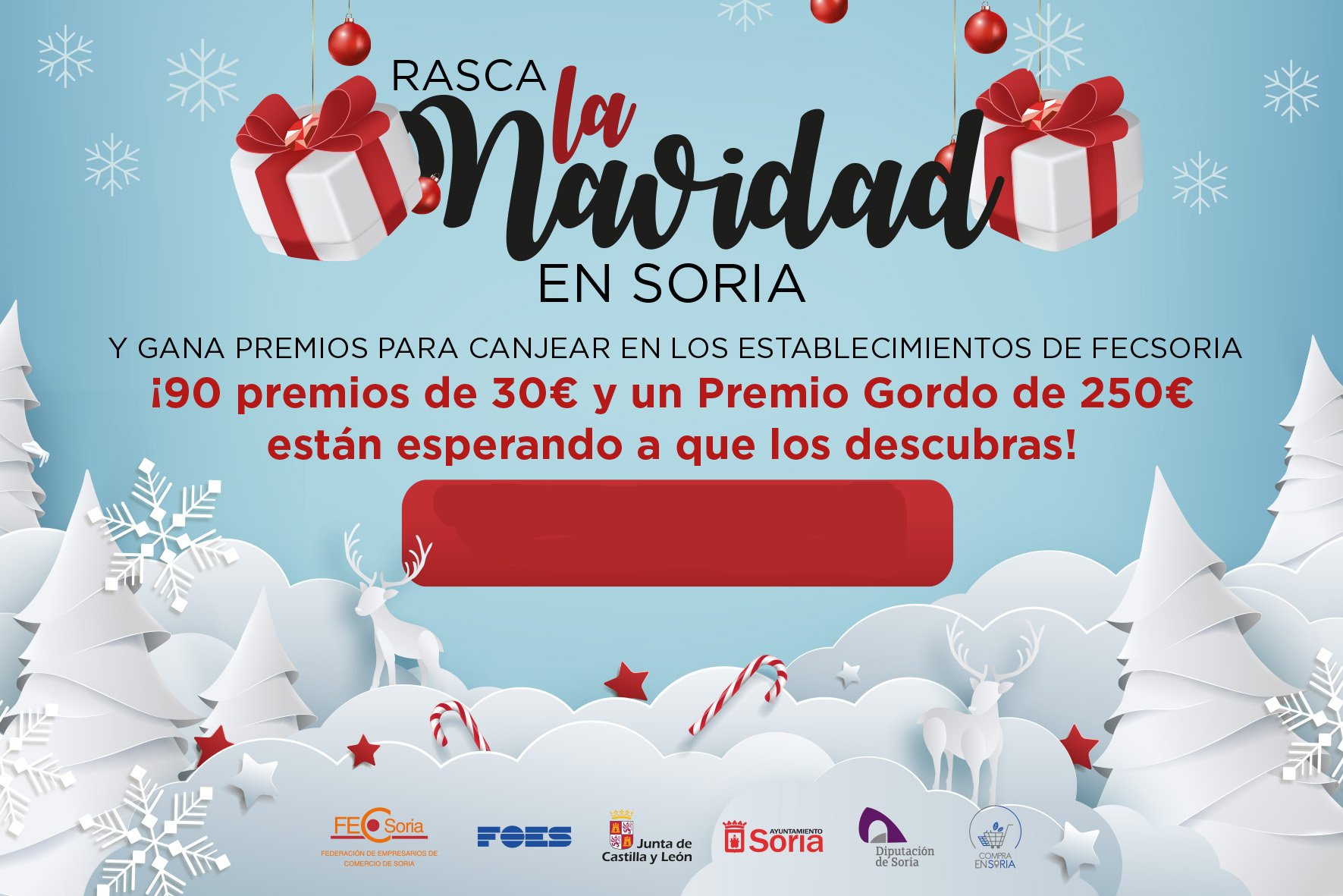 Desde el 4 de diciembre, más de 120 establecimientos comerciales de la provincia de Soria regalaban a sus clientes boletos ‘rasca y gana’ por las compras realizadas. De los 50.000 boletos puestos en circulación, más de 90 unidades contenían premios por valor total de 3.000 euros. Esta iniciativa ha sido desarrollada por FECSoria (Federación de Empresarios de Comercio de Soria), con la contribución de Ayuntamiento de Soria y Junta de Castilla y León.